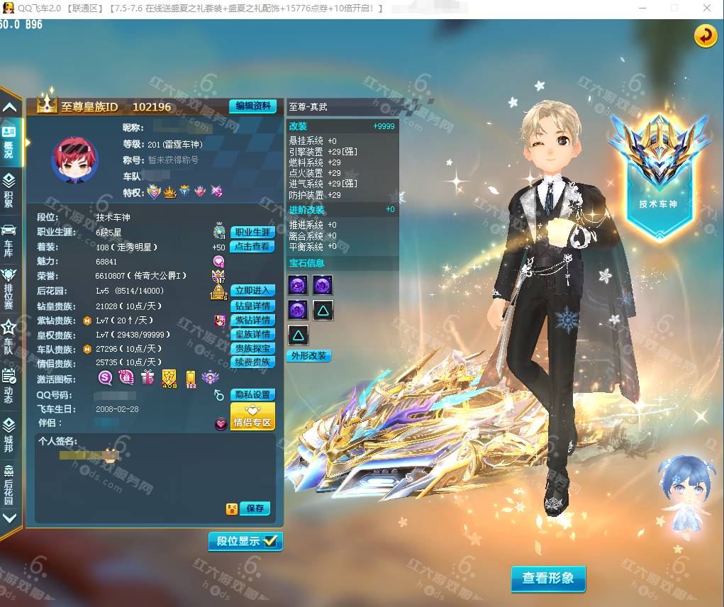 F15781,红六更号裙777584596【电信一区】红六自营,魅力5W,荣誉90w,紫钻3级,皇族3级,6S车:双四至尊玄冥/真武+29,单四至曜影虎/耀虎/X次元白虎+29,终极烈焰新星/孔明,超核玩家雷蛇,风之使者,赤道极光,T2:守护者,T1:圣剑骑士,无影之刃,超能英雄,A*11车:雷诺,HelloKitty,大圣雷诺,电玩雷诺,魔王雷诺,蓐收雷诺,地狱雷诺,骑宠2页:雪凝公主+9,超能大白+5,座椅*1,套装男6页:璀璨星芒/夜月流星/幻雪夕光,套装女9页:X次元白虎/山海碧波吟,15999R
